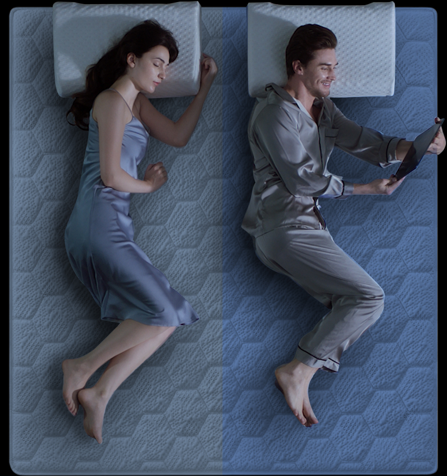 基于6686体育智能调节专利技术,床垫左右两边独立调节,满足夫妻双方不同体型及睡姿变化的睡感需求,私人专属睡眠,互不影响。